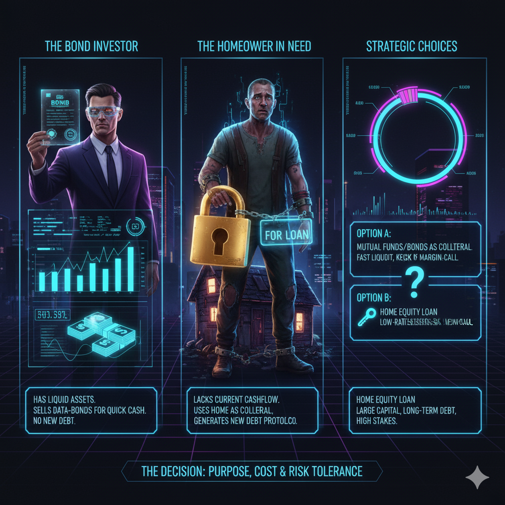 ถึงแม้บุคคลนั้นจะมีความมั่งคั่ง (มีทั้งบ้านและพันธบัตร) การเลือกใช้หลักประกันแต่ละประเภทก็มีข้อดีและข้อเสียที่แตกต่างกันมากในเชิงกลยุทธ์การเงิน ดังนี้ค่ะ: