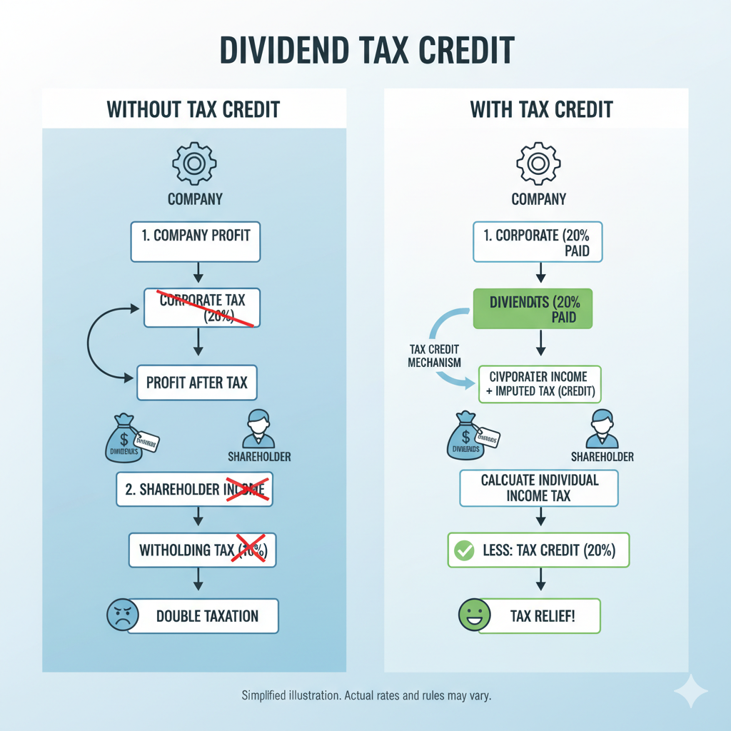 เพื่อป้องกันการเสียภาษีซ้ำซ้อน รัฐบาลจึงให้สิทธิ เครดิตภาษีเงินปันผล โดยผู้ถือหุ้นสามารถนำเครดิตนี้ไปใช้เป็น “ภาษีที่ชำระแล้ว” เพื่อขอคืนหรือใช้หักลดหย่อนภาษีเงินได้บุคคลธรรมดาได้