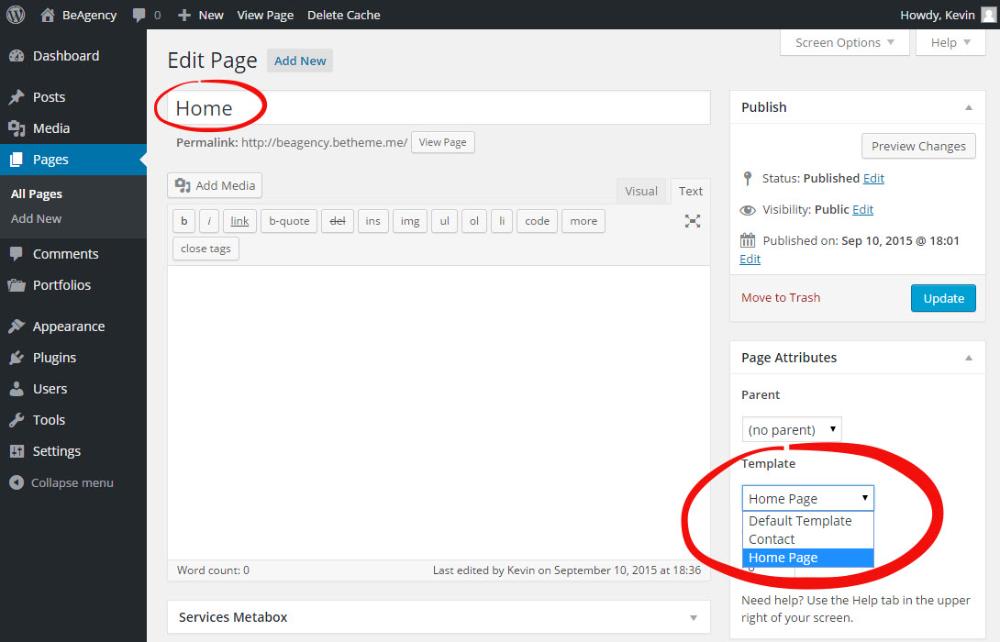 - Create a Front Page. Log in to the WordPress Dashboard. Once there, go to Pages -> Add New. Create a new page named “Home” (or anything else), select “Home Page” as the template for your new page and then publish the page.